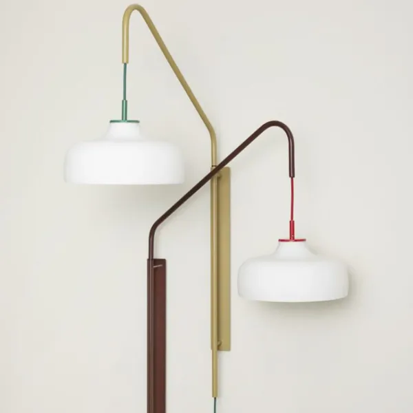 Graphique, L’Applique Murale Current Est Une Pièce De Design Fascinante ! Découvrez Une Combinaison De Couleurs Qui Fonctionne Parfaitement Avec L’Abat-Jour En Verre Opale Arrondi Pour Un Équilibre Reposant. Le Cordon En Tissu Rouge Apporte Une Touche D’Originalité.