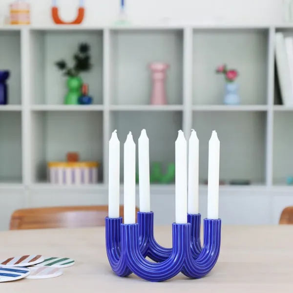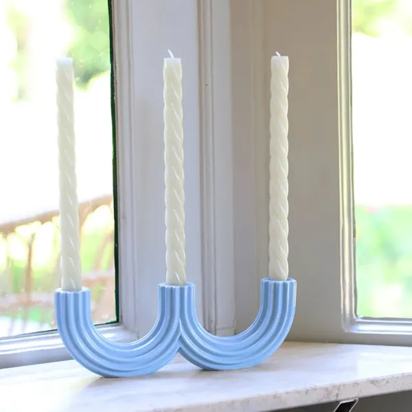 Le Bougeoir Churros, Signé &Amp;Klevering, Maîtrise L’Art De L’Équilibre Et De La Séduction Grâce À Ses Bords Incurvés Associés À Sa Couleur Vive. Inspiré Des Délicieux Churros, Il Est Fabriqué À Partir De Dolomite Qui Met En Valeur Leur Silhouette Originale. Disponible En Bleu Électrique Et Rose.