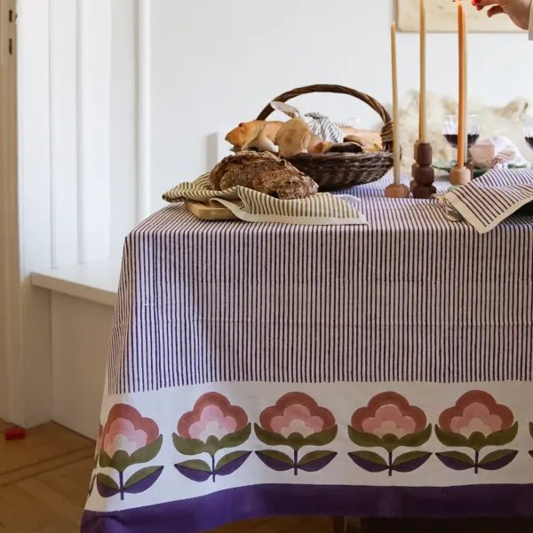 Dressez Votre Plus Belle Table Avec La Nappe Bonnard Violet En Coton Naturel ! Aux Motifs Fleuris Et À L’Imprimé Rayé, Elle Ajoute Une Touche De Couleur Et De Modernité À Votre Art De La Table. Confectionnée Avec Soin Selon La Technique Ancestrale Du Block Print, Cette Nappe Artisanale Est Unique. Grâce À Sa Matière Et Son Style Intemporel, Elle Résistera À L’Épreuve Du Temps Et Des Tendances.