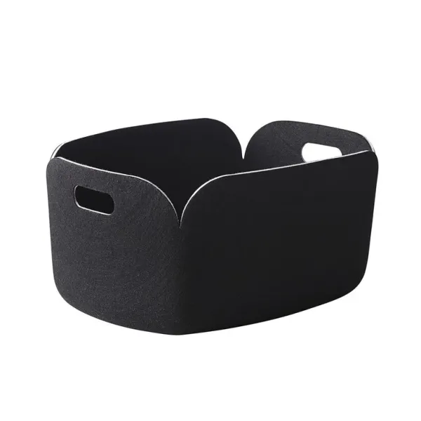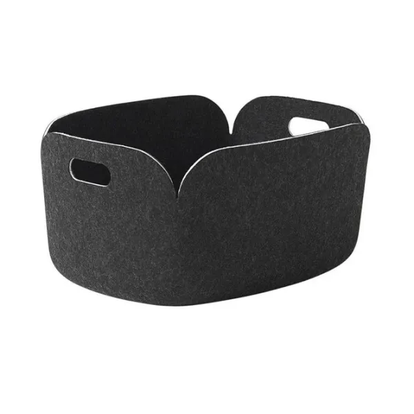 Panier Restore By Muuto, L’Équilibre Parfait Entre Design Et Écologie !Ce Panier Est Fabriqué Dans Un Matériau 100 % Recyclé, Réalisé À Partir De Bouteilles En Plastique. Il En Résulte Un Feutre Très Doux Au Toucher, Qui Donne À Ce Panier Un Style À La Fois Cosy Et Élégant. On Reconnaît La « Nordic Touch » De La Célèbre Marque Muuto : Élégance, Simplicité Et Sobriété. Ce Grand Panier (L 48 X L 35 X H 23 Cm) Sera Utile Dans Toutes Les Pièces De La Maison… Il Est Idéal Pour Ranger Des Magazines Dans Le Salon, Des Jouets Dans La Chambre Des Enfants, Des Produits De Beauté Ou Du Linge Dans La Salle De Bains…Disponibles En Plusieurs Coloris : Gris, Noir, Gris Noir, Bleu Marine, Beige Sable