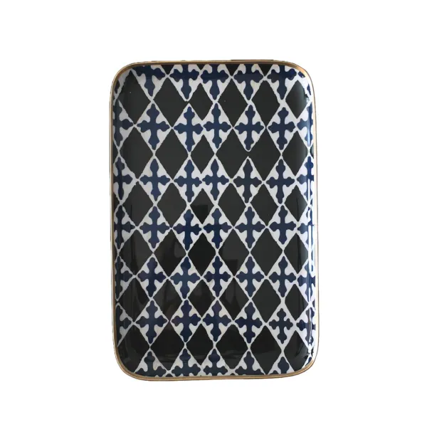 Servez En Toute Élégance Avec Le Plateau Chapelle Bleu Nuit De Chez Boncoeurs. Ses Motifs Aux Inspirations Vitraux Et Sa Bordure À La Finition Dorée À La Main Ajoutent Un Aspect Raffiné. C’Est L’Accessoire Parfait Pour Mettre En Valeur Tout Ce Qui Y Est Déposé. Cet Objet Est L’Œuvre D’Un Artisan. La Finition Dorée À La Main De La Bordure Rend Chaque Pièce Unique Grâce Aux Variations De Formes Et De Coloris Des Patines Qui Peuvent Apparaître.