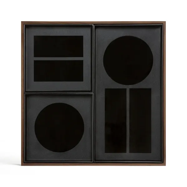 Avec Son Verre Anthracite Graphique Conçu À La Main Et Son Noyer Luxueux, Cet Ensemble De Quatre Organisateurs De Bureau Offre Une Polyvalence Et Une Fonctionnalité Illimitées !