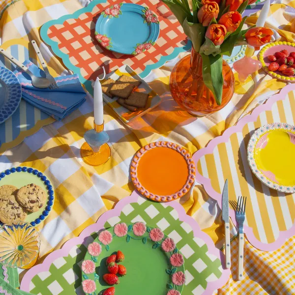 Direction L’Italie, Ambiance Dolce Vita Garantie ! Apportez Une Touche De Soleil Et De Couleur À Votre Table Avec Notre Collection Exclusive De Sets De Table Biscotti. Parfait Pour Ajouter Une Touche De Couleurs Vives À Votre Table, Ce Set De Table Combine Des Bordures Rose Incurvées Avec Des Rayures Aux Teintes Ocres Audacieuses. Fabriqué En Vinyle, Il Est Facile À Nettoyer Et À Entretenir, Pour Que Vos Repas Restent Beaux Et Agréables. Choisissez Parmi Plusieurs Modèles, Tous Fièrement Fabriqués En France.