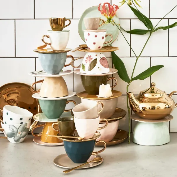 Commencez Votre Journée Avec La Tasse À Expresso De La Collection Good Morning Pour Apporter Douceur Et Élégance À Votre Matinée. Cette Tasse En Porcelaine Porte Une Belle Couleur Dorée Et Une Forme Ondulée Faite À La Main Pour S’Affirmer Avec Singularité.