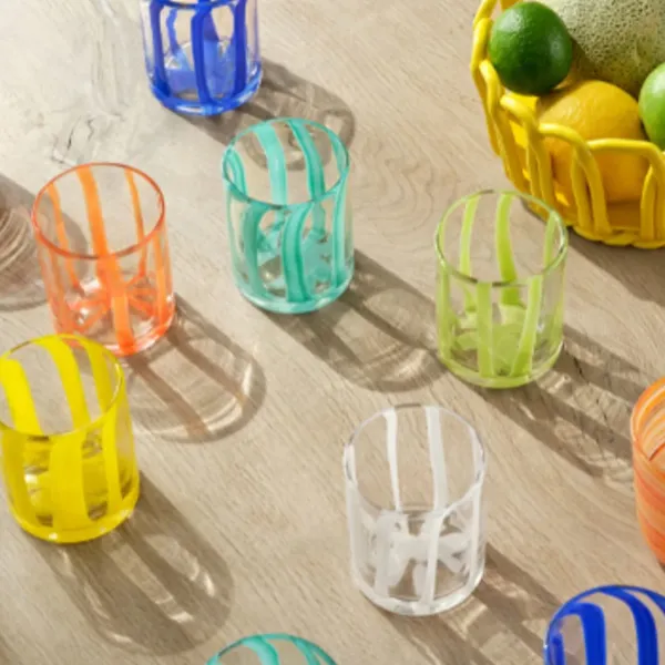 Parsemé De Transparence Et De Rayures Colorées, Le Verre À Rayures Bleu Foncé Viendra Illuminer Votre Art De La Table. Découvrez Les Autres Modèles De Cette Collection De Verres Imaginé Par Cozy Living.